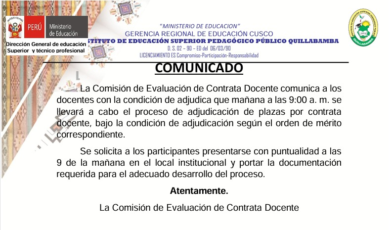ComunicadosConvocatoriaConvocatoria Docente Educación Superior